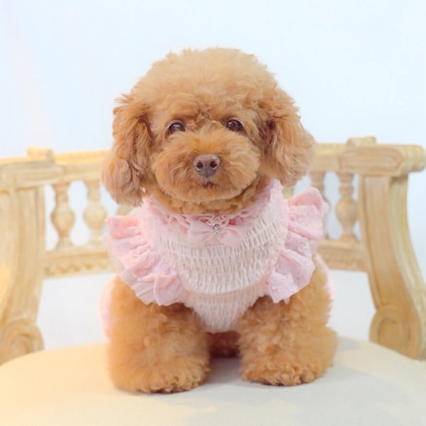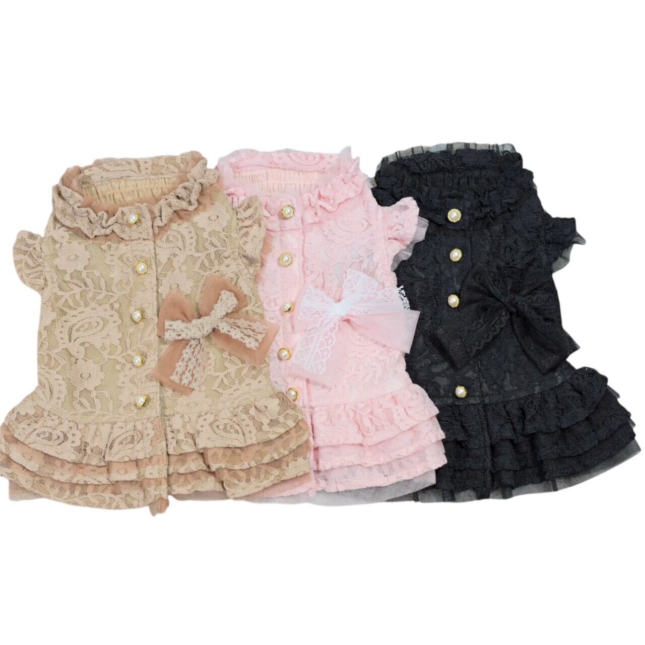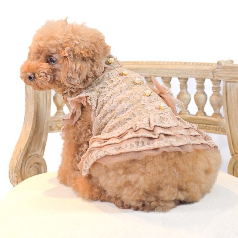 【新作】シャーリングレースワンピース|犬服 小型犬 ドッグウェア KALINA