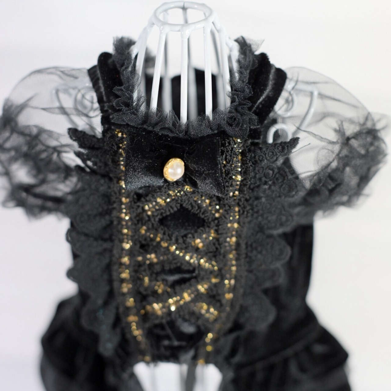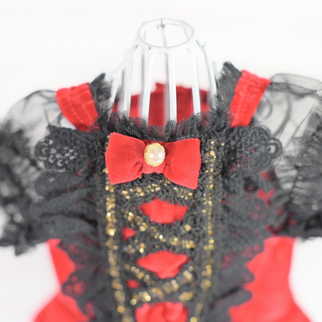 胸元はゴールドレースのレースアップで華やかに
