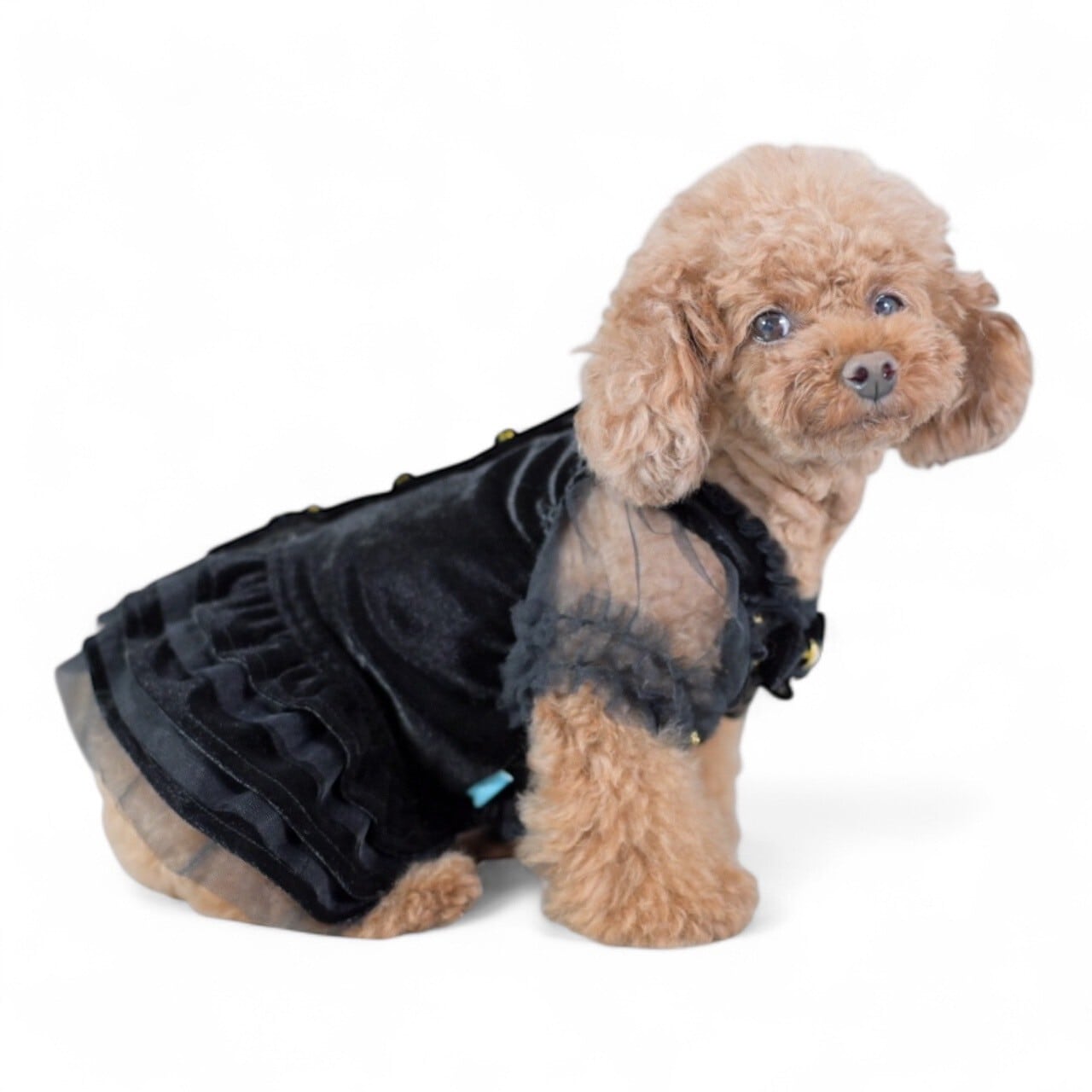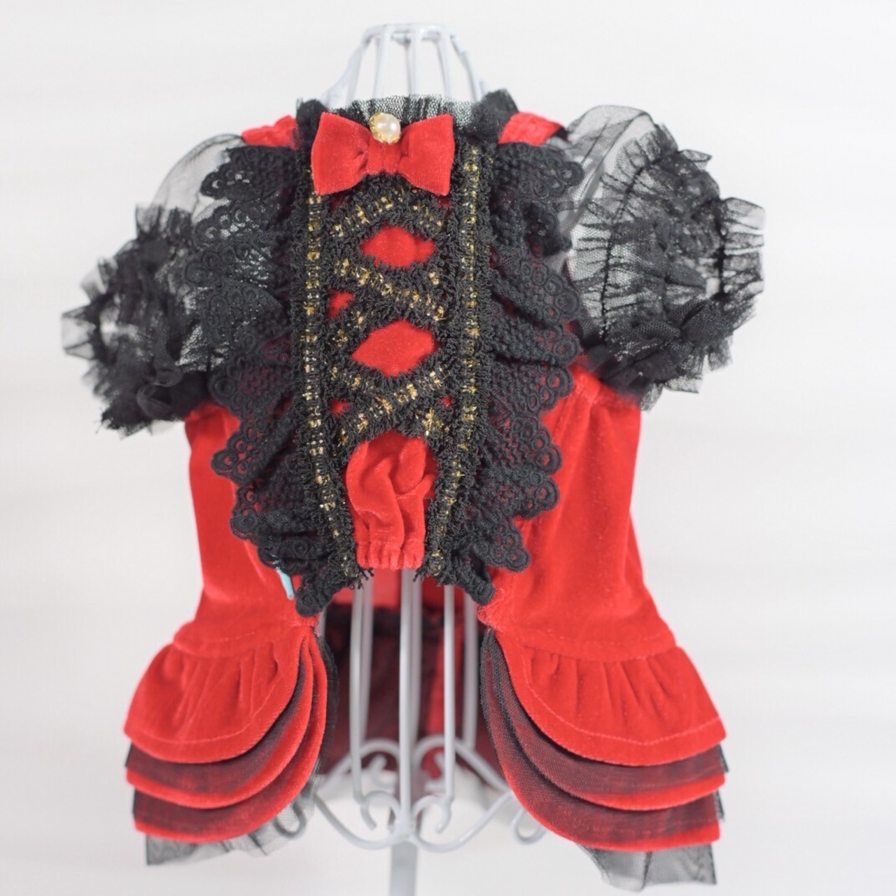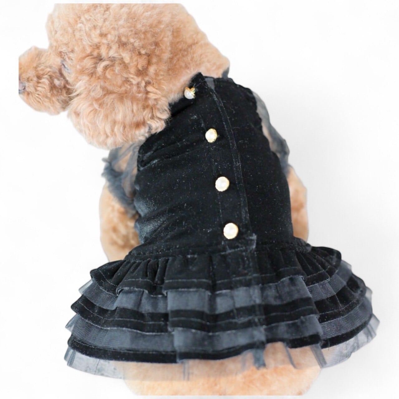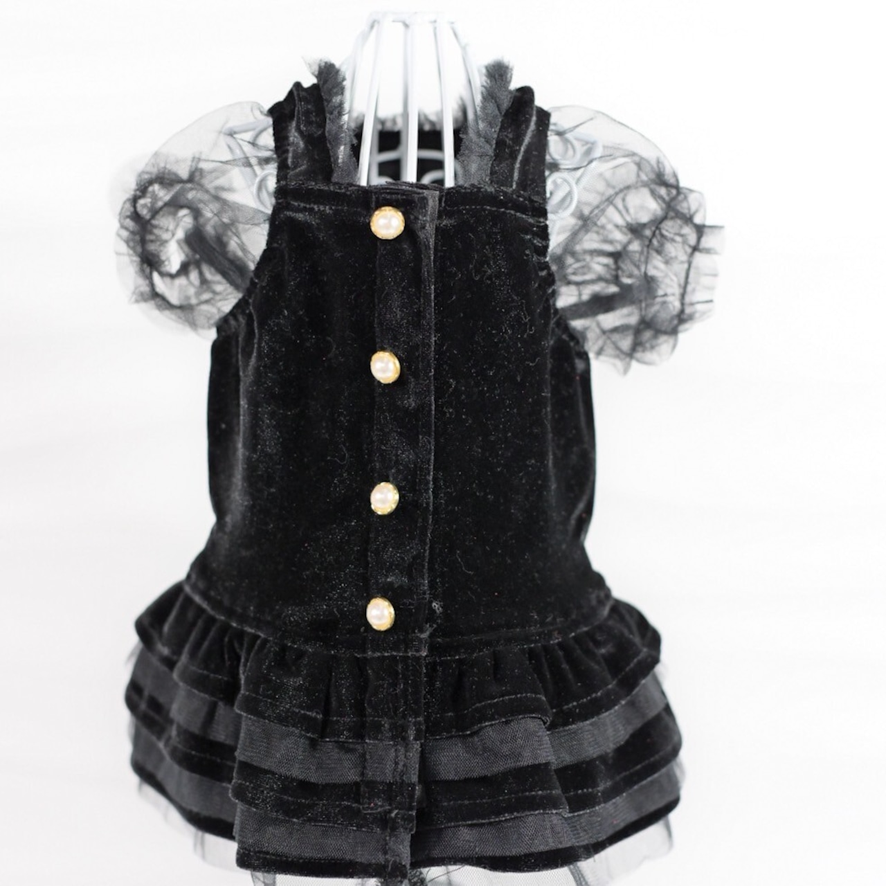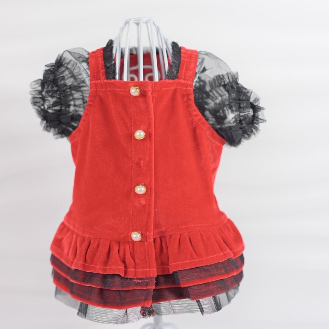 スカート部分はベルベットとチュールの二枚重ねフリルでふんわりと、とっても可愛い仕上がりに