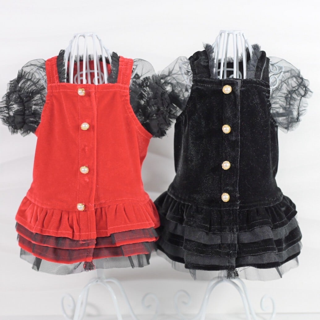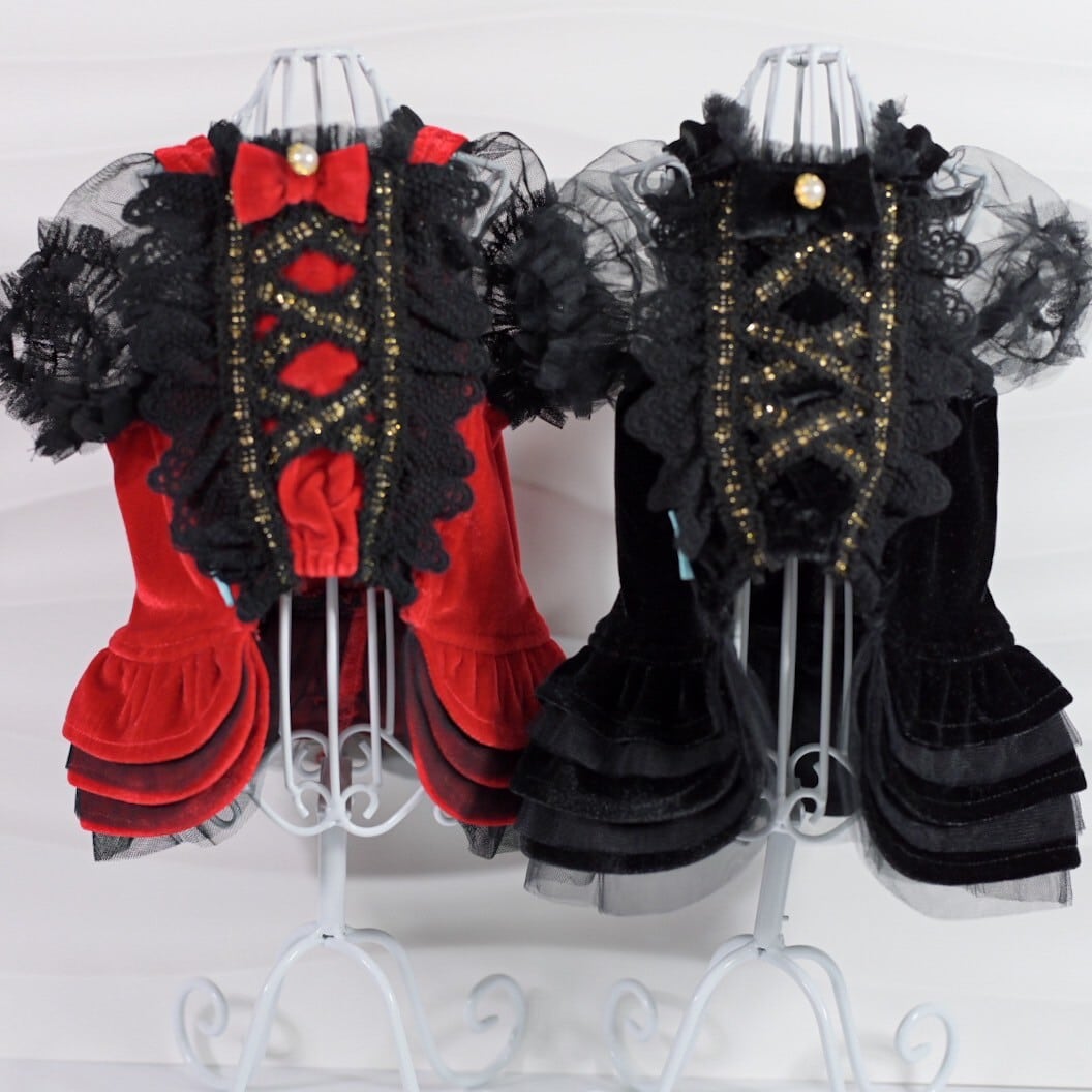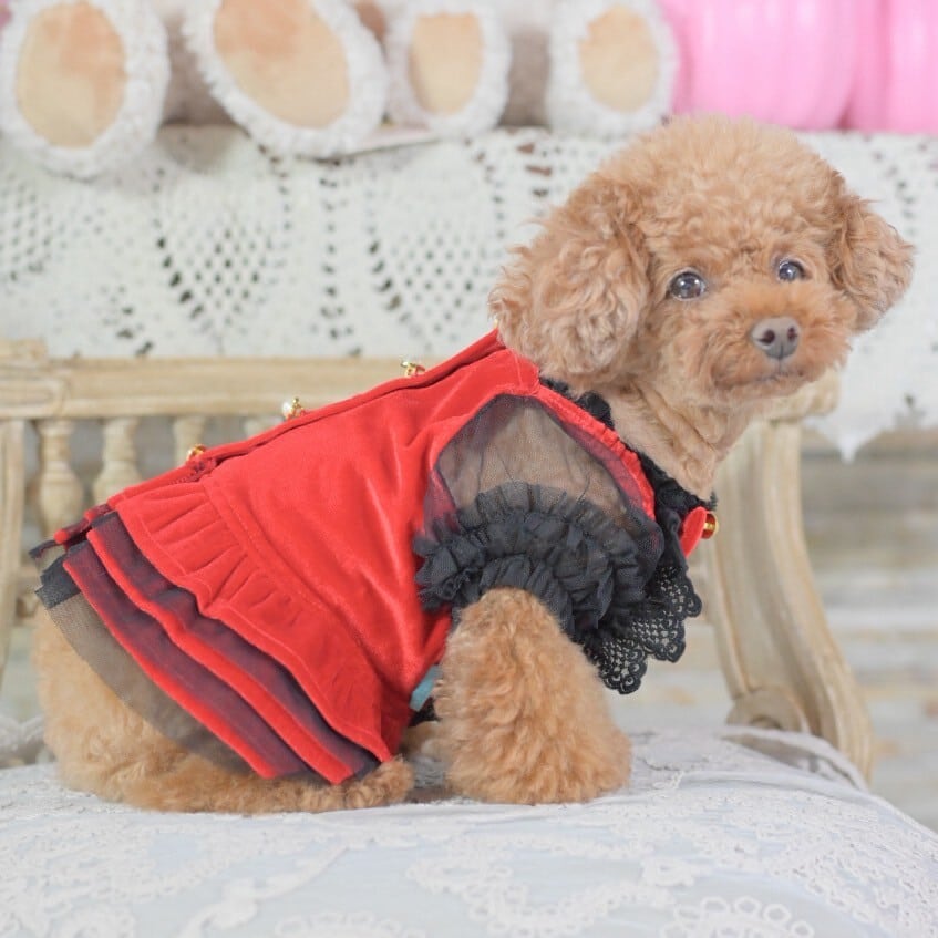 【新作】ベルベットレースUPワンピース|犬服 小型犬 ドッグウェア お出かけ KALINA