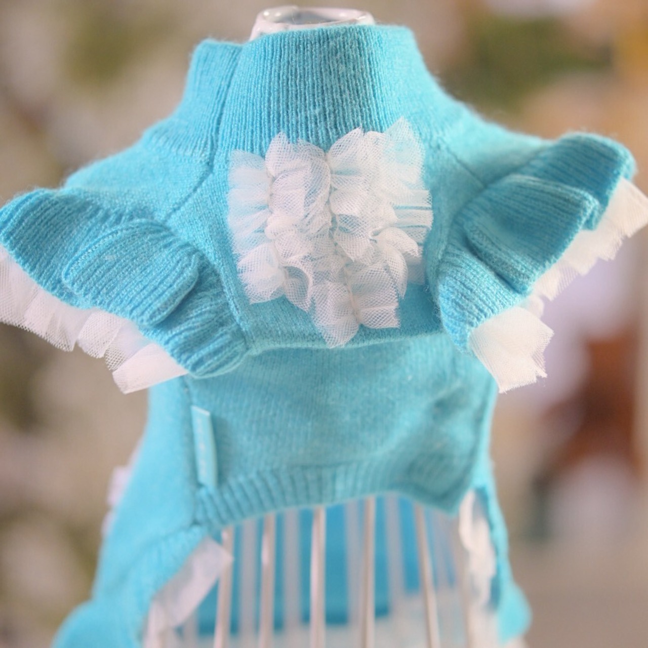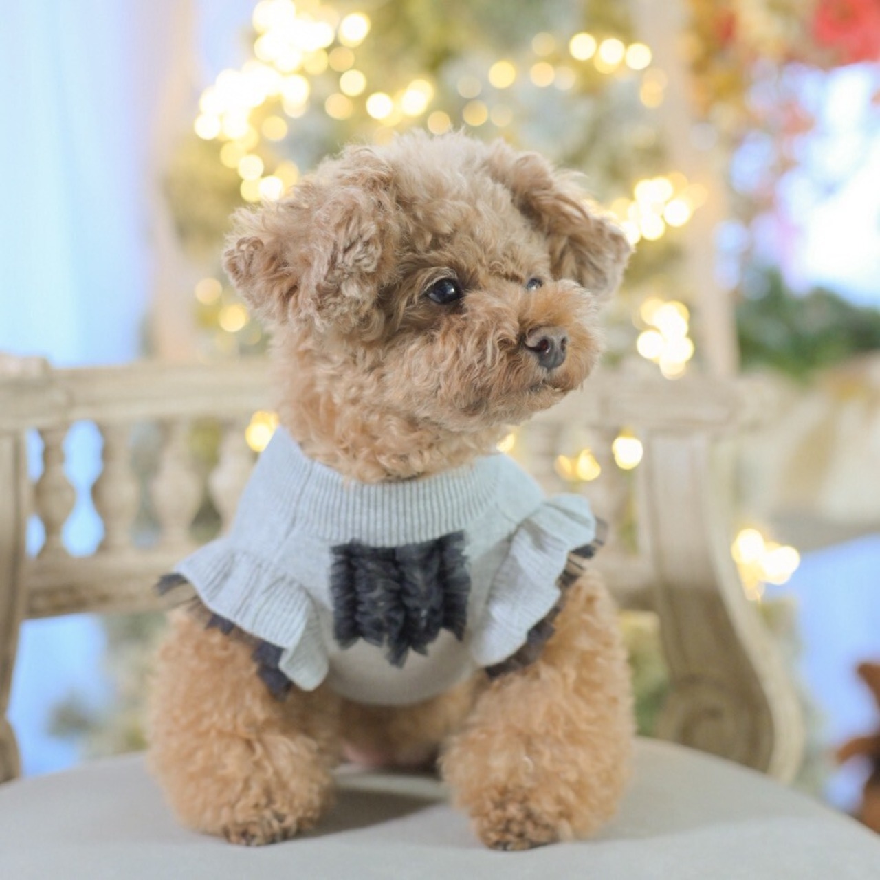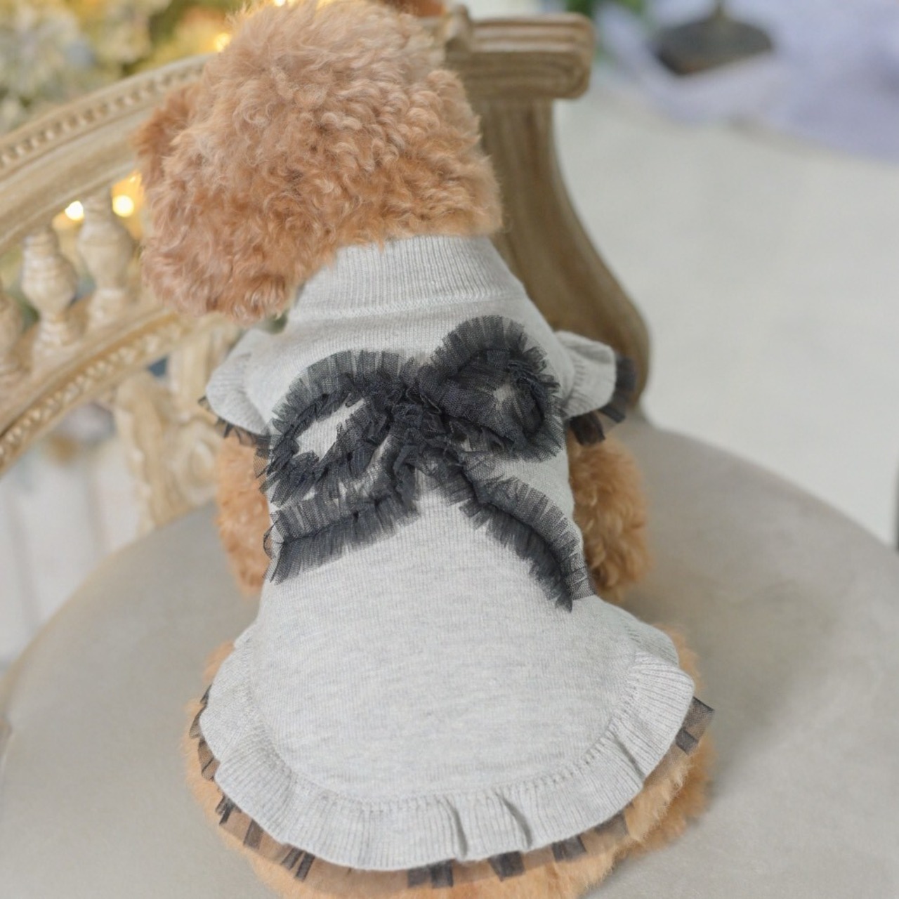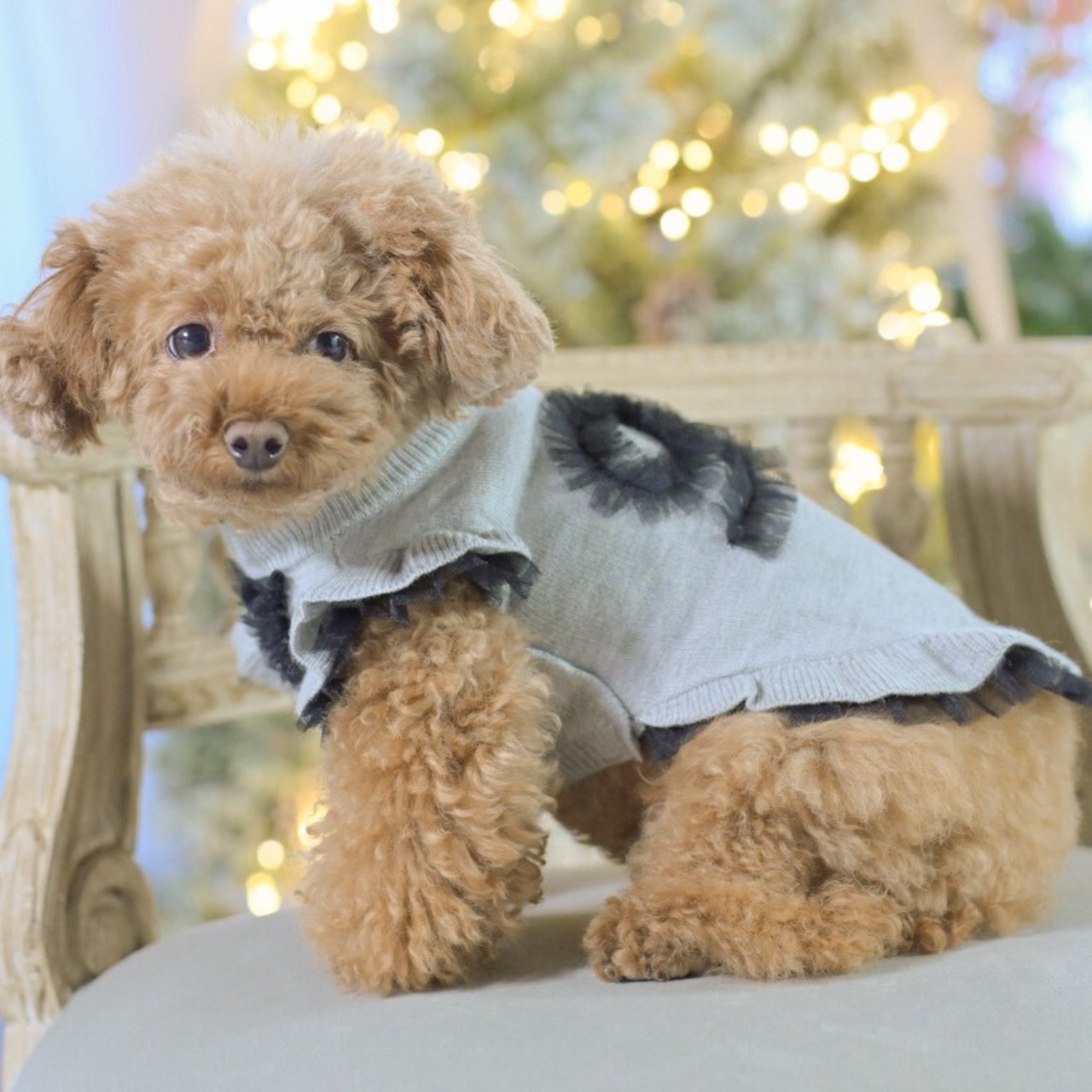 【新作】カシミヤ混チュールリボンモチーフワンピース|犬服 小型犬 ドッグウェア お出かけ KALINA