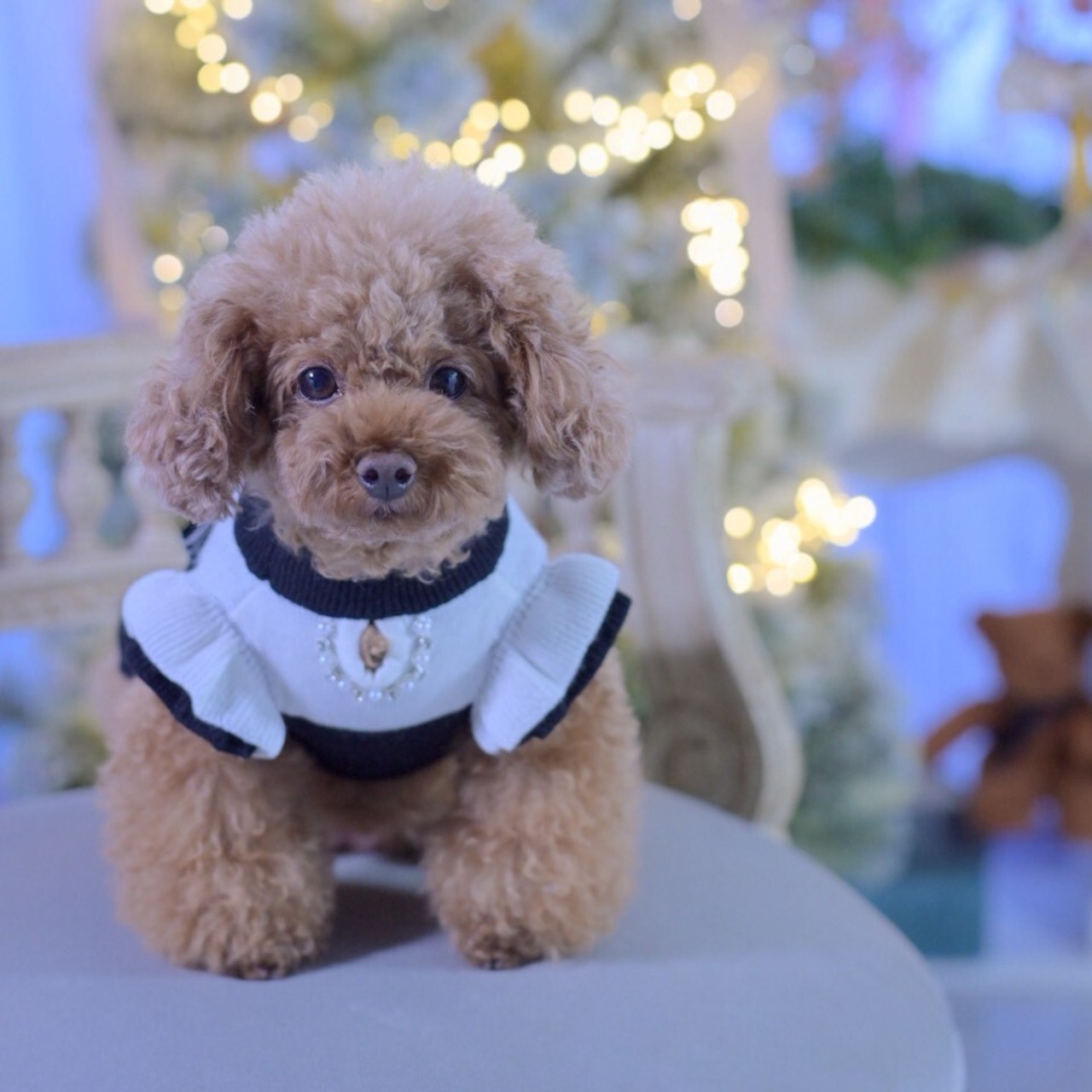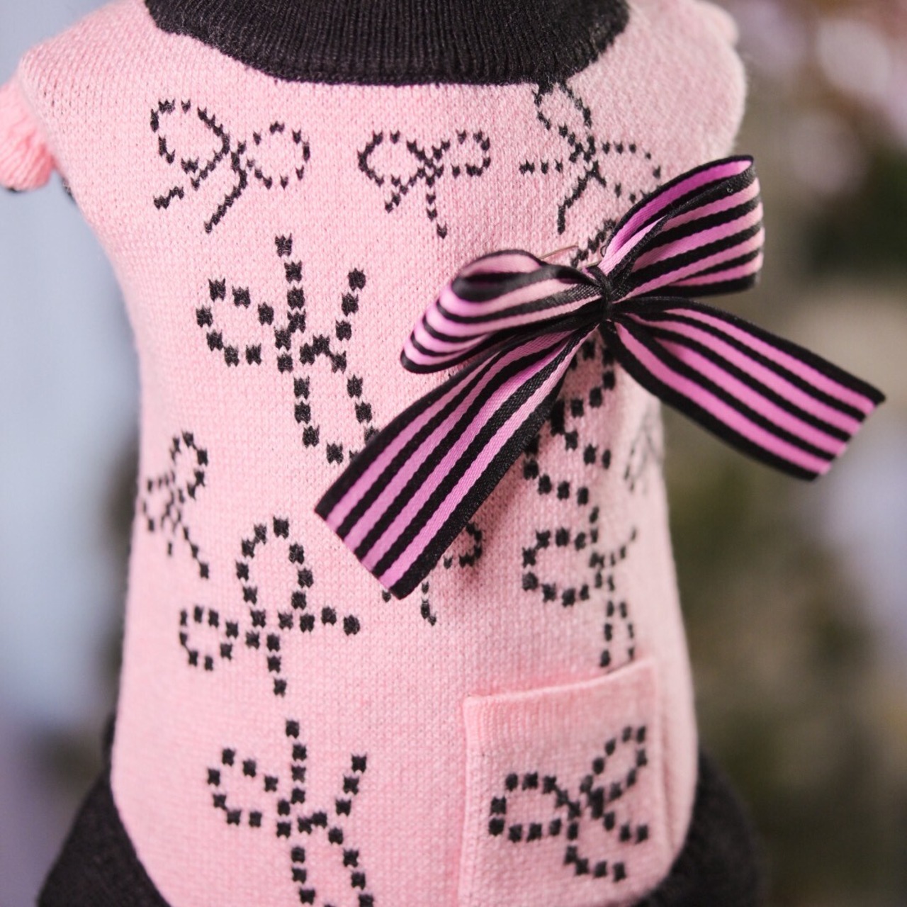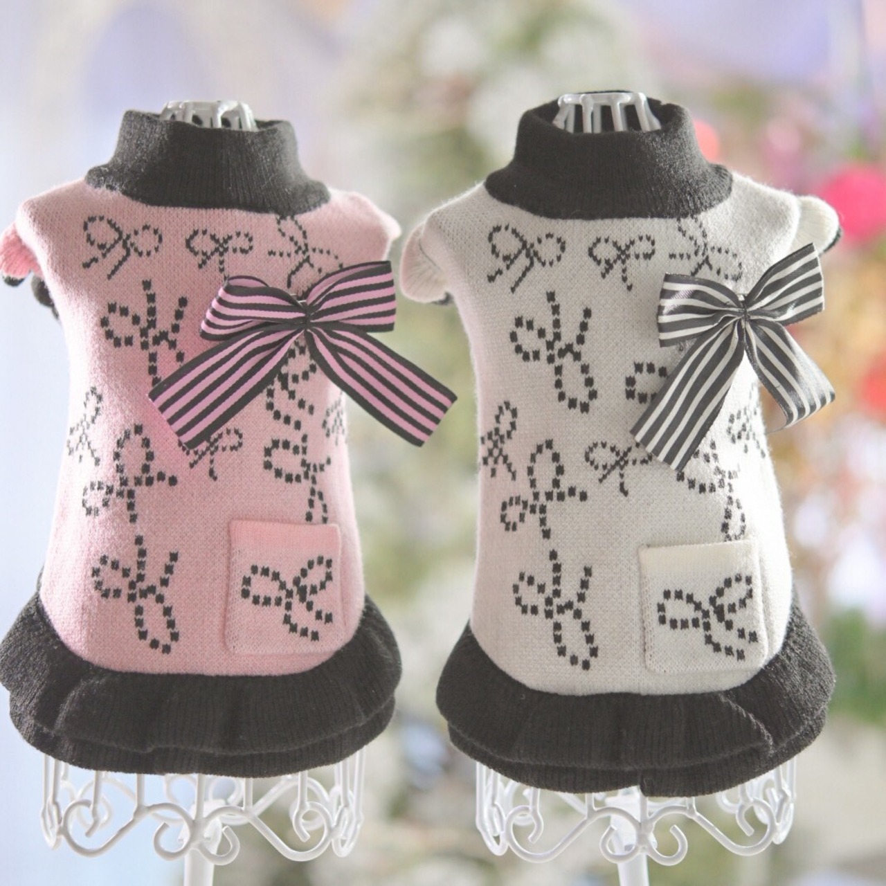 【新作】カシミヤ混リボン柄ジャガードワンピース|犬服 小型犬 ドッグウェア お出かけ KALINA