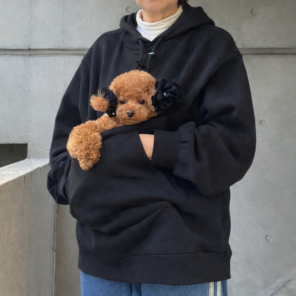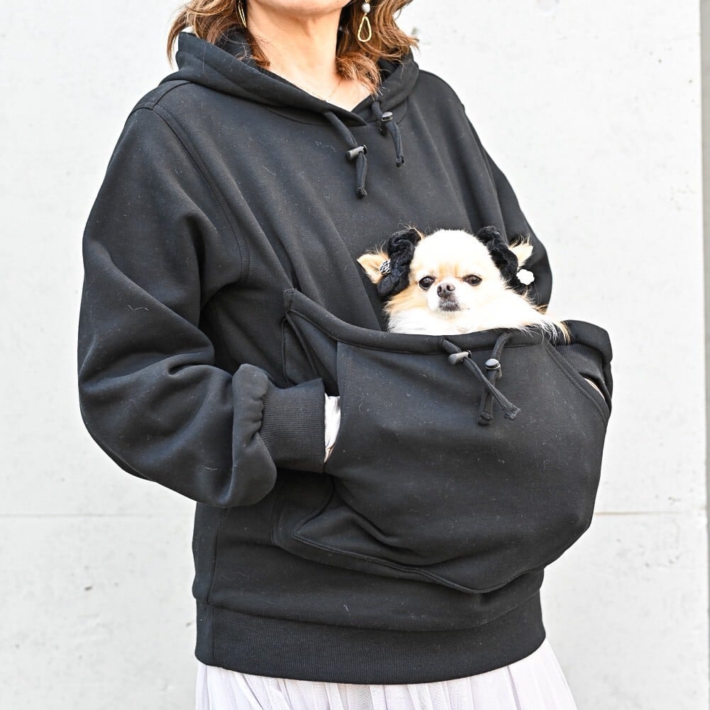 Mサイズ着用時、ポケットに入っているわんちゃんは 約4kg です。