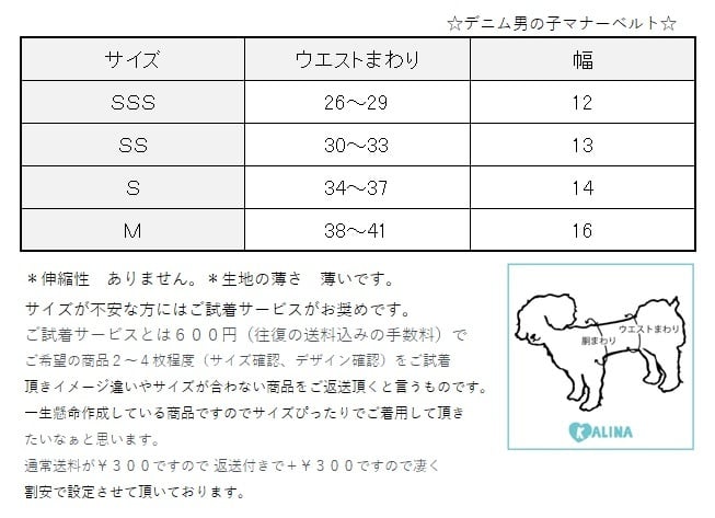 デニム男の子マナーベルト|犬服 小型犬 ドッグウェア マナーウェア 男の子 KALIN