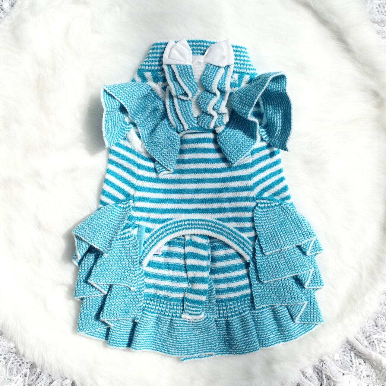ニット細ボーダーフリルワンピース | 犬服 小型犬 ドッグウェア KALINA