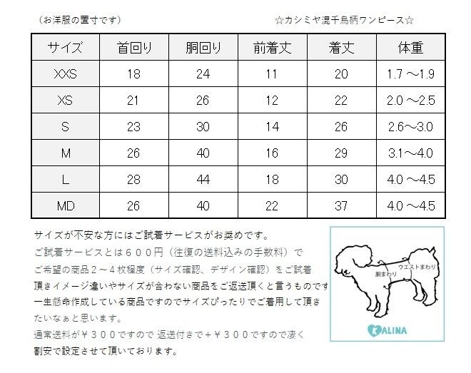 カシミヤ混千鳥柄ワンピース|犬服 小型犬 ドッグウェア KALINA