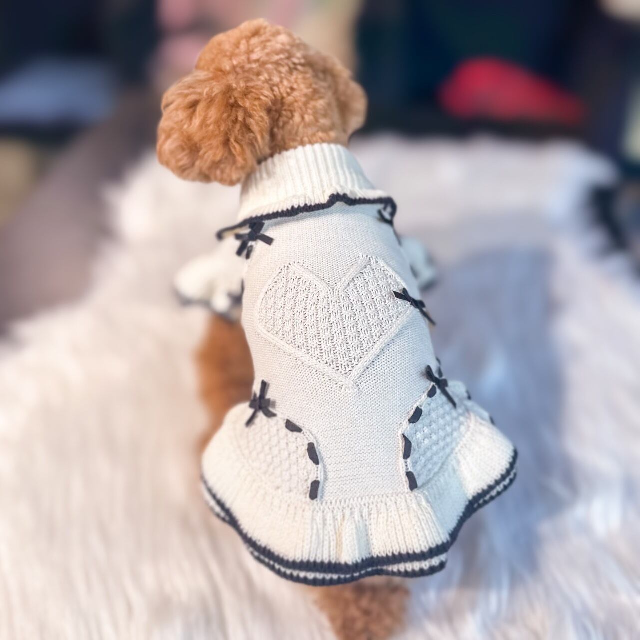 ニットかの子ハートリボンワンピース | 犬服 小型犬 ドッグウェア KALINA