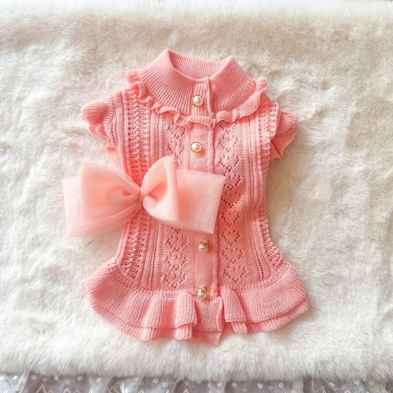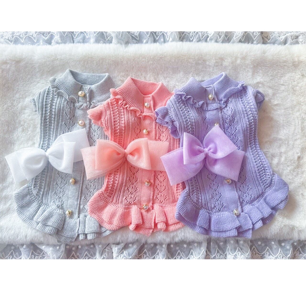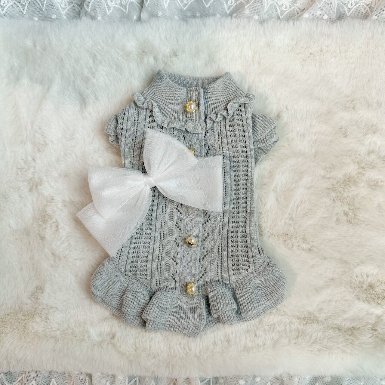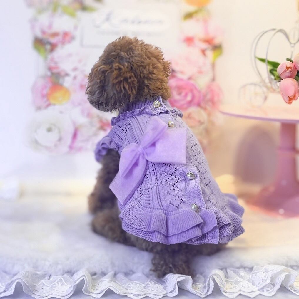 ニット縦柄ハート透かしワンピース | 犬服 小型犬 ドッグウェア KALINA