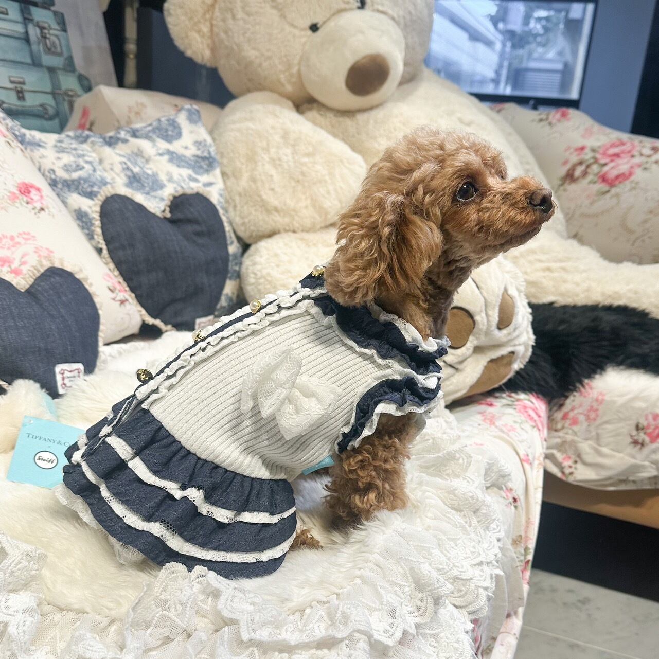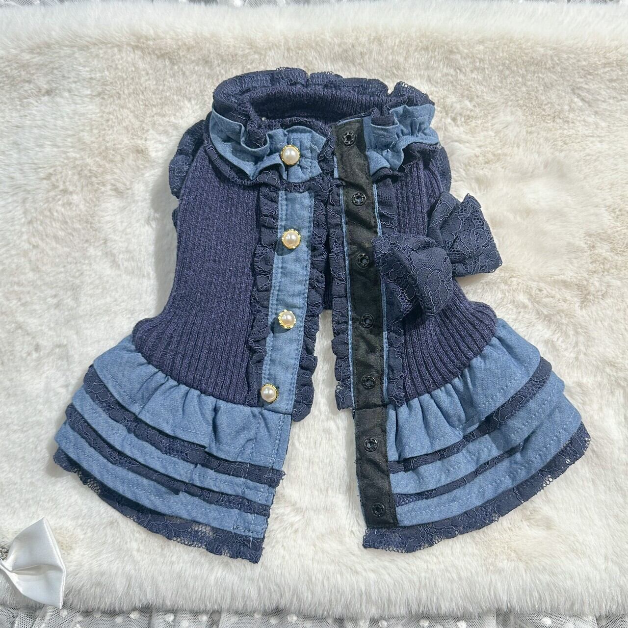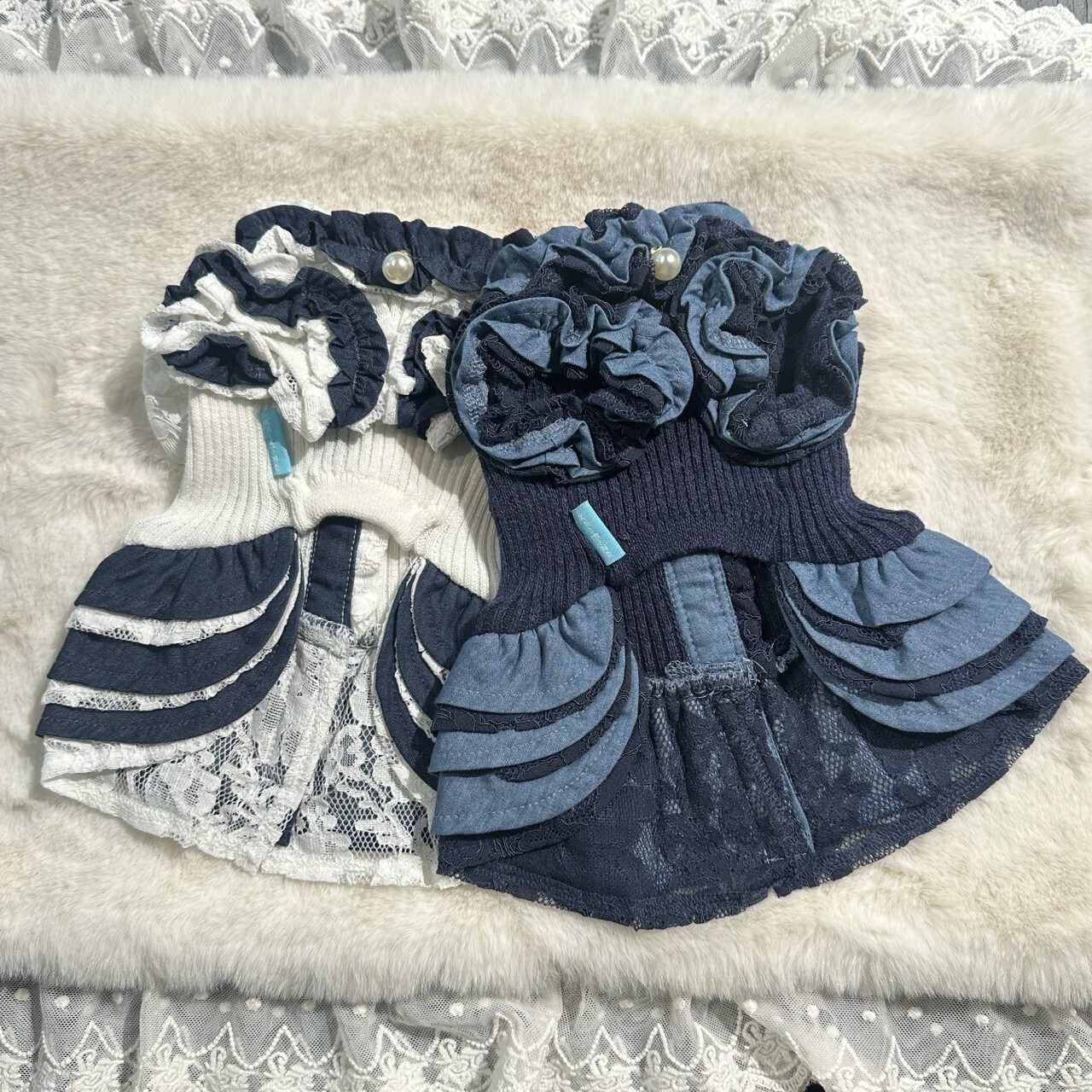デニム風ニットとデニム&レースを切り替えたワンピース
