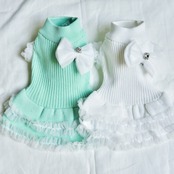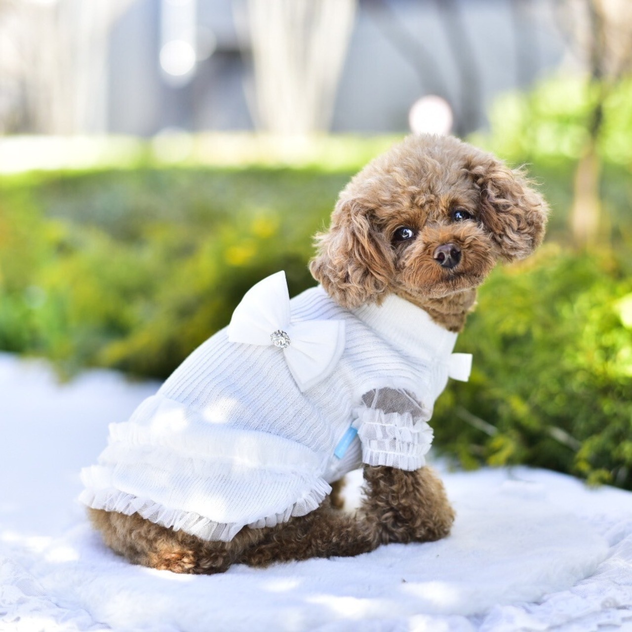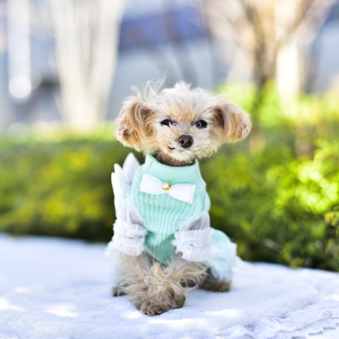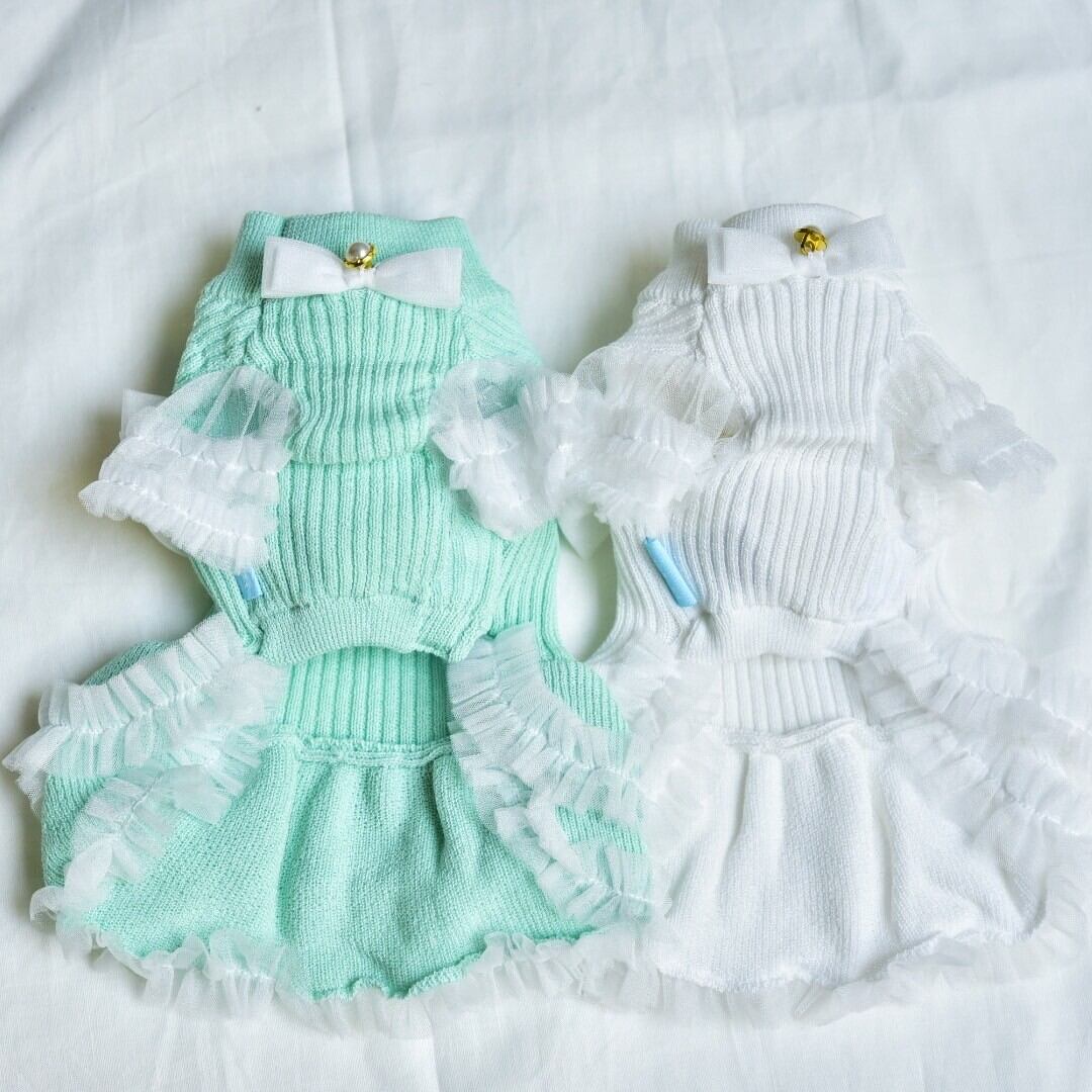 ニットリブ袖パフスリーブワンピース | 犬服 小型犬 ドッグウェア KALINA