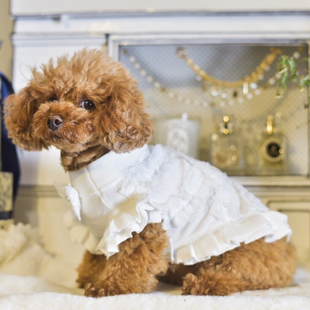 ニットレースいっぱいワンピース | 犬服 小型犬 ドッグウェア KALINA