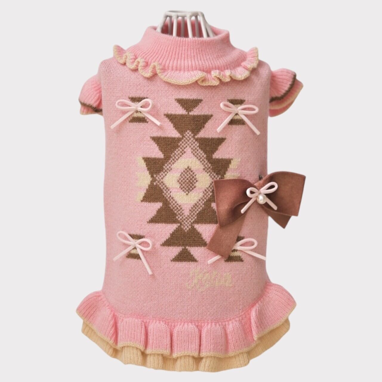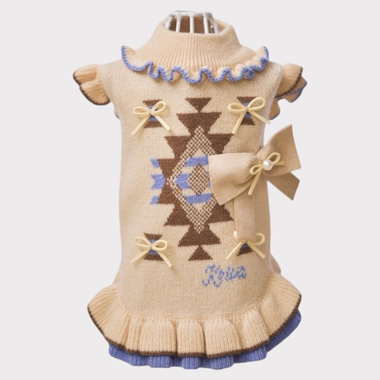 ニットオルテガ柄ワンピース|犬服 小型犬 ドッグウェア KALINA