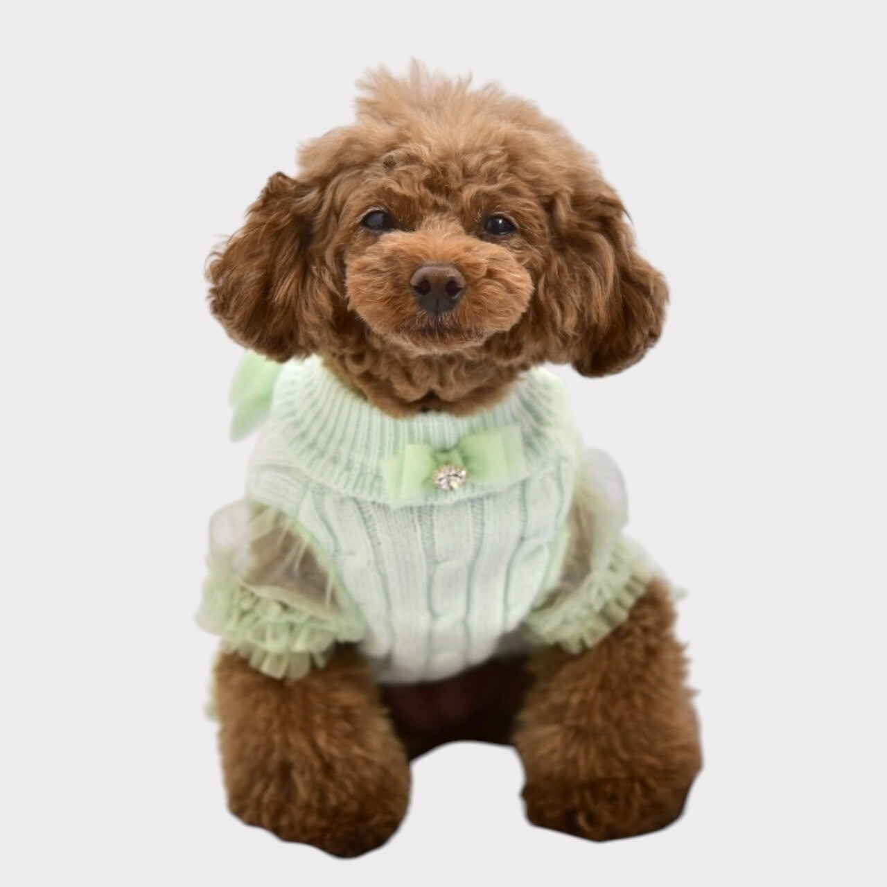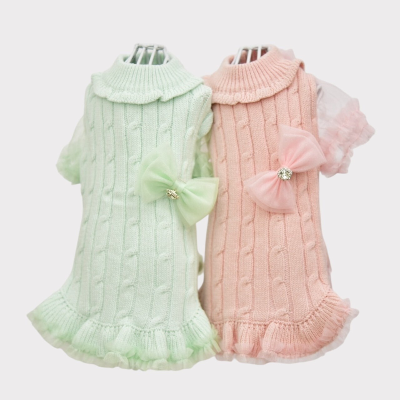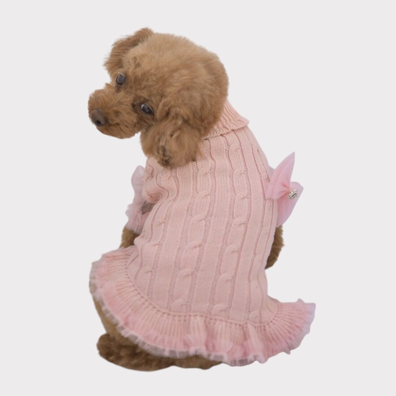 ニットケーブル袖パフスリーブワンピース|犬服 小型犬 ドッグウェア KALINA