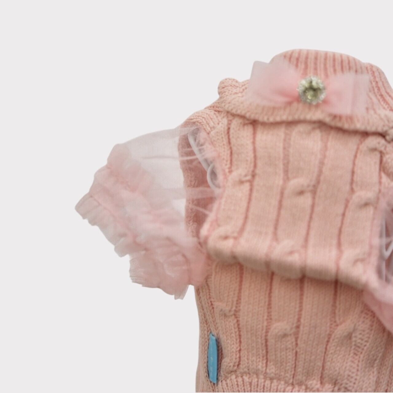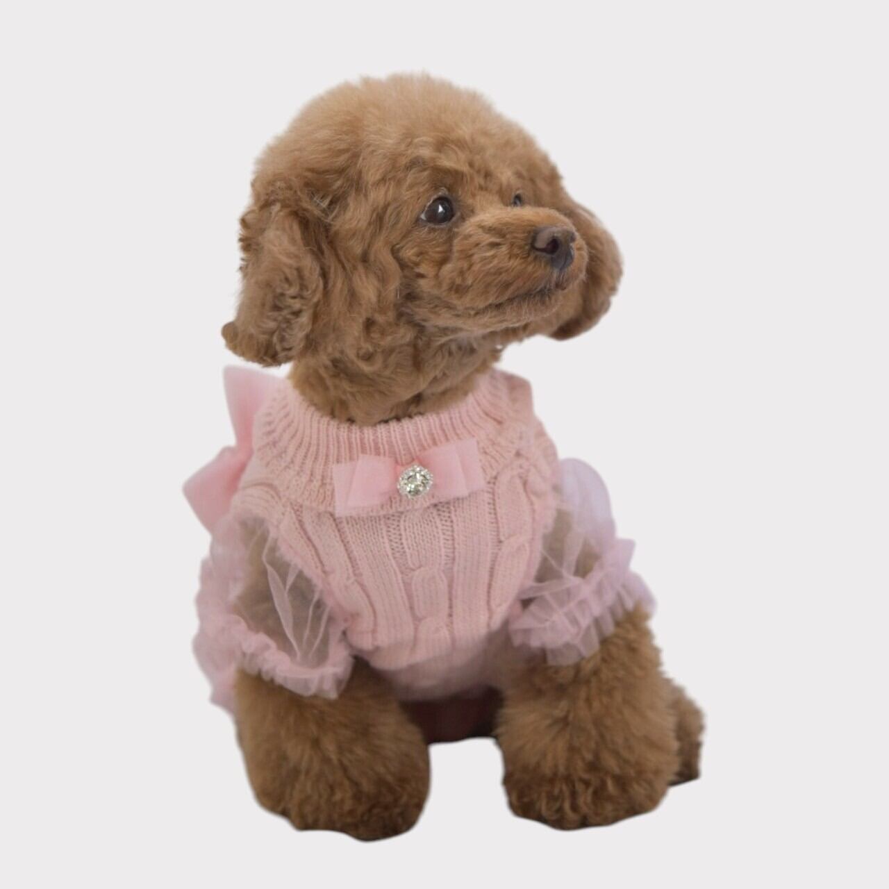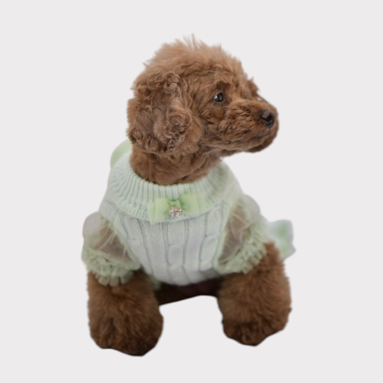 ニットケーブル袖パフスリーブワンピース|犬服 小型犬 ドッグウェア KALINA